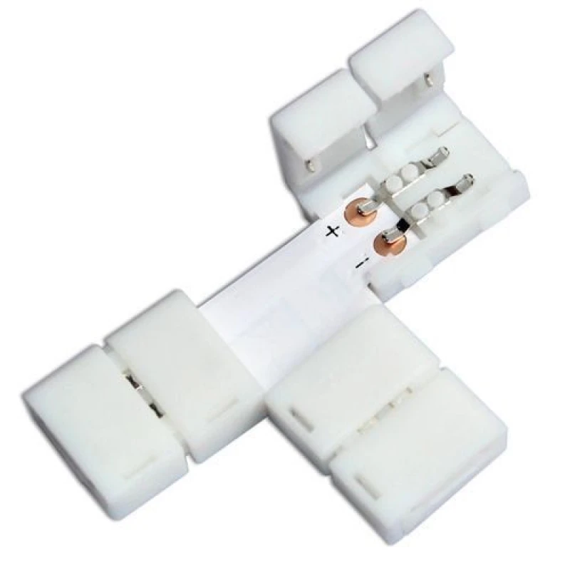- Diseño en forma de T para unir tres tiras LED