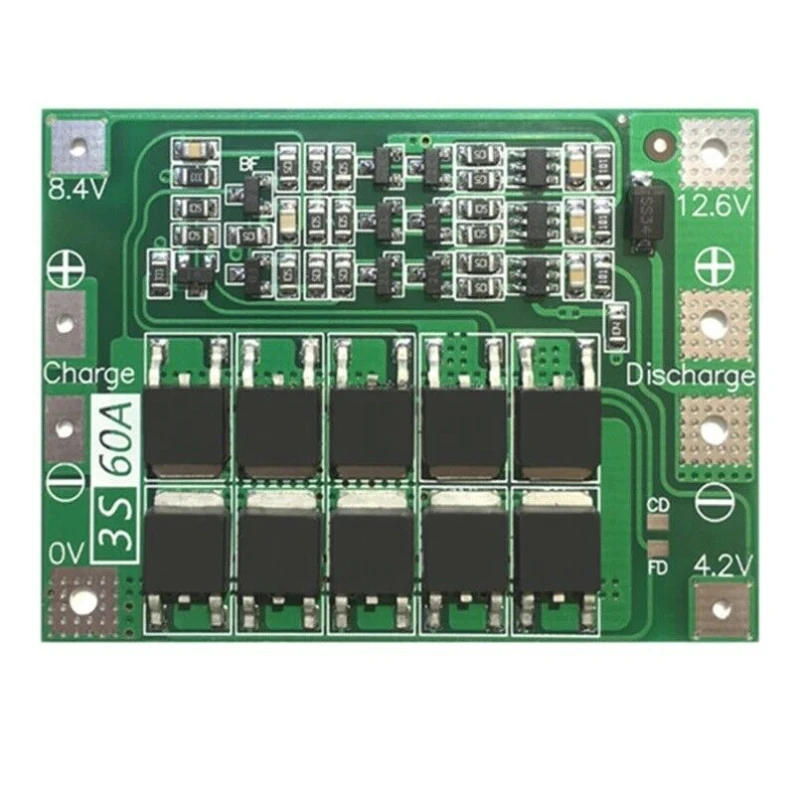 Esta placa de protección PCB está diseñada específicamente para baterías de litio configuradas en 3S, ofreciendo una corriente máxima de descarga continua de 60A. Es ideal para proteger baterías de litio tipo 18650, 26650 y baterías de polímero de litio, asegurando un funcionamiento seguro y eficiente.