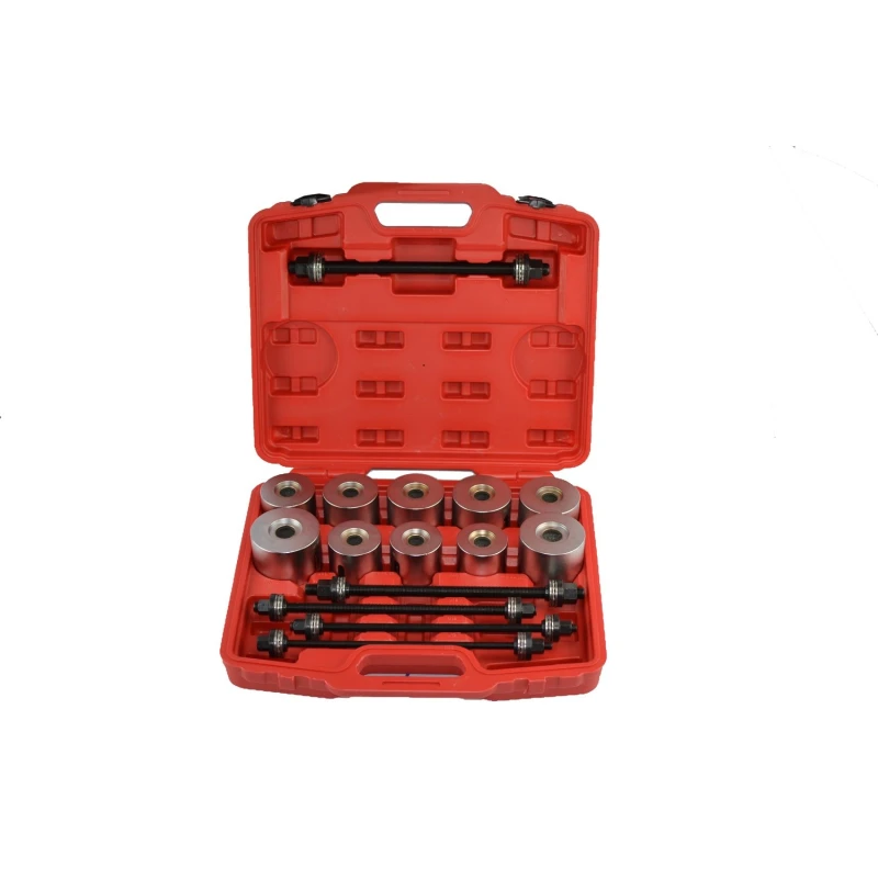 - Juego universal de 27 piezas para extraer e instalar rodamientos, silent-blocks y retenes.