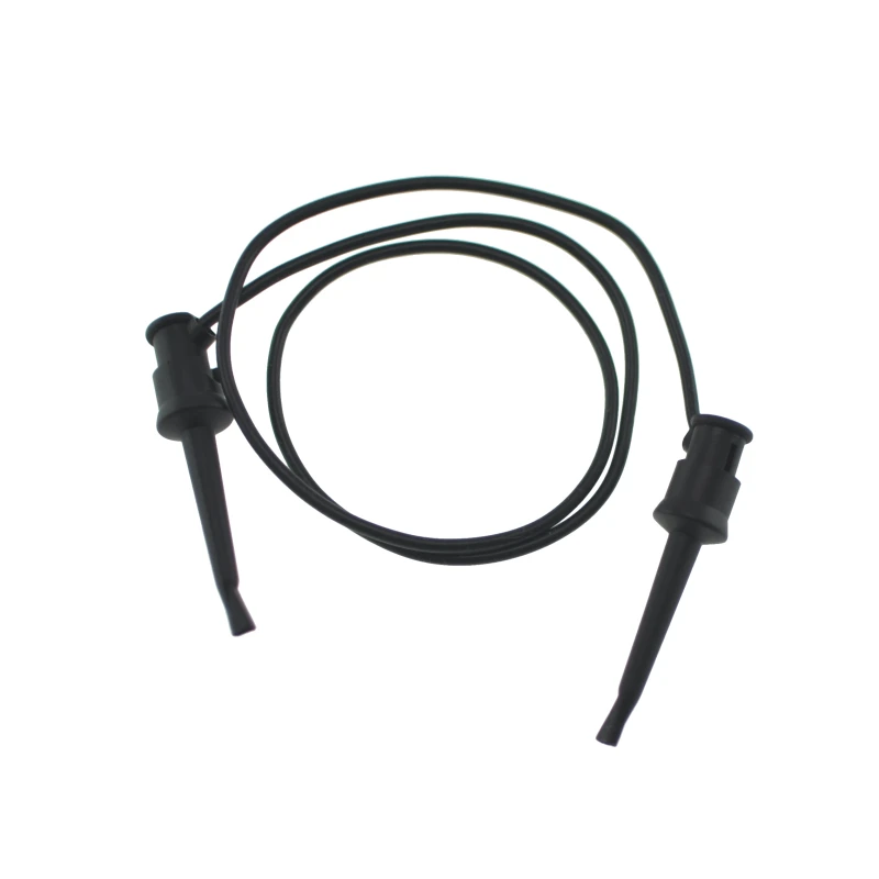 - Conectores tipo test clip en ambos extremos para una sujeción segura en componentes electrónicos.